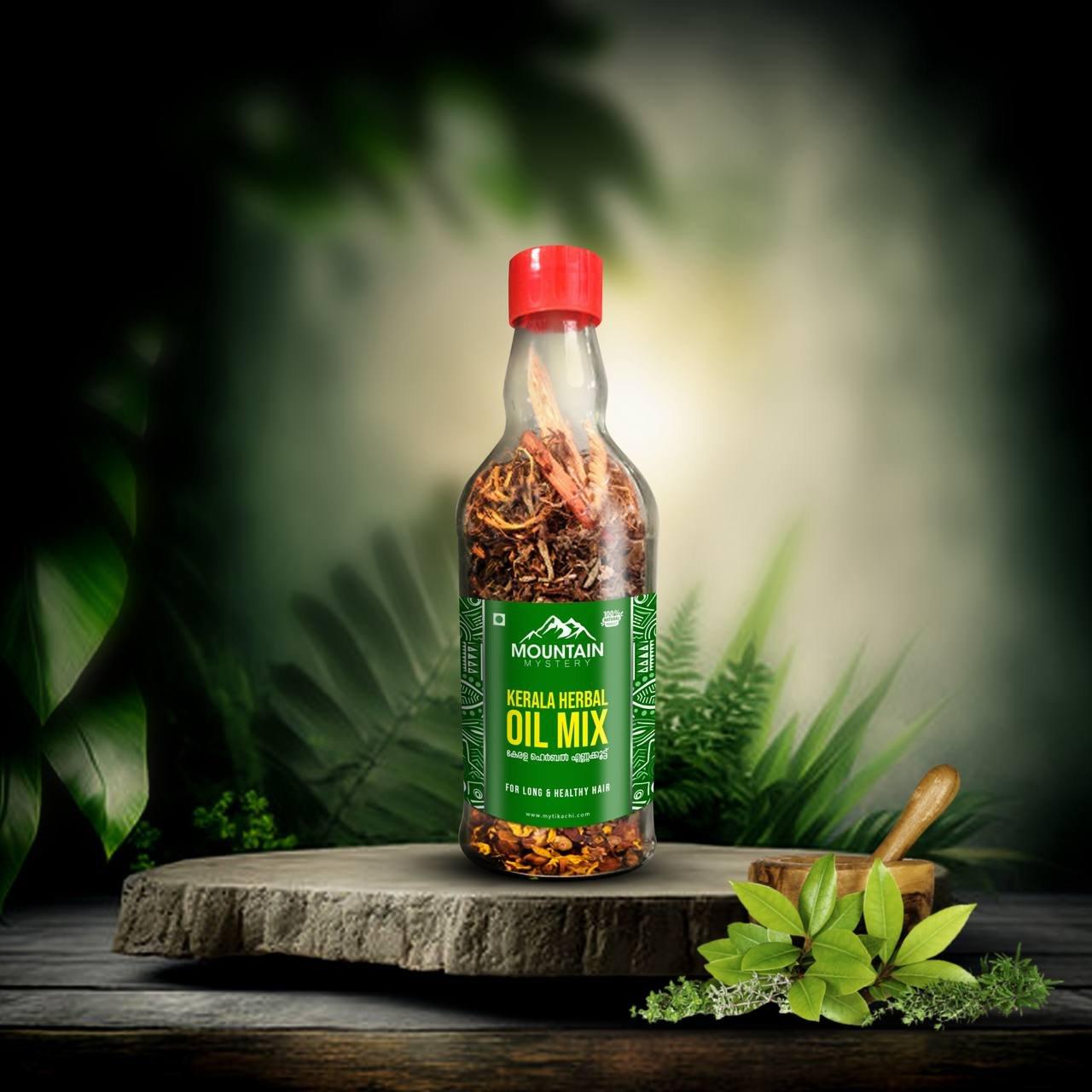 केरल की पारंपरिक जड़ी-बूटियों से बना हर्बल हेयर ऑयल मिक्स, बालों की वृद्धि, झड़ने में कमी और स्कैल्प पोषण के लिए, Mountain Mystery by TIKACHI का 300 ग्राम पैक