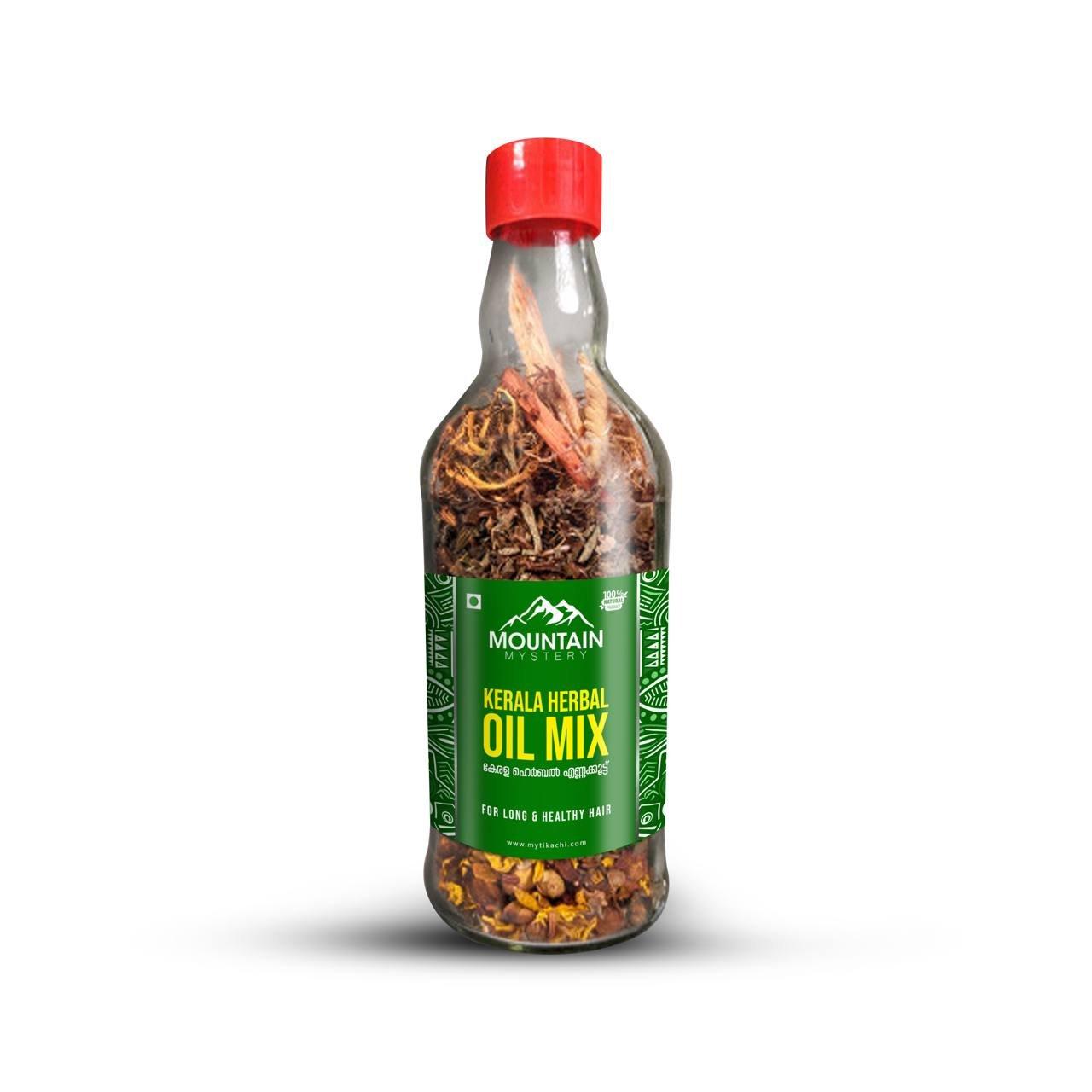 Traditional Kerala-style herbal hair oil mix made with carefully selected herbs to support hair growth, reduce hair fall and nourish the scalp, crafted by TIKACHI’s Mountain Mystery range in a 300 g pack.