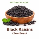 • Premium seedless black raisins with rich sweetness and chewy texture, perfect for snacking, desserts and daily dry‑fruit intake, packed fresh by TIKACHI’s Mountain Mystery range in a 100 g pack.